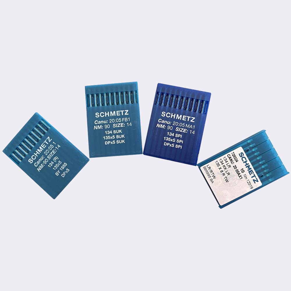 Agujas de tacón grueso para máquina industrial plana y máquinas de coser de doble arrastre por aguja, la más versátil para coser distintos tipos de tejidos.