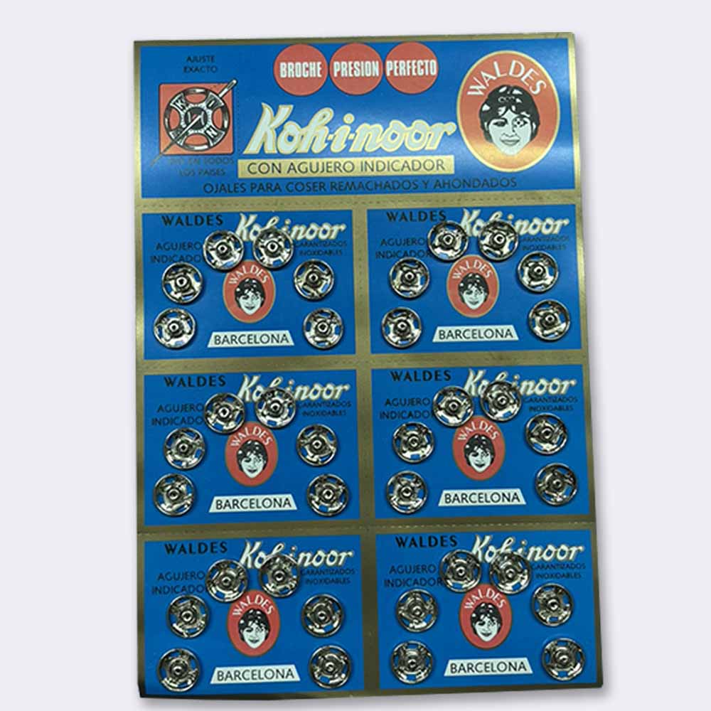 Broches de presión en color níquel, recomendados para cierres de prendas.