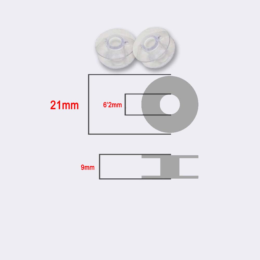Fabricadas en plástico transparente permitiendo ver la cantidad de hilo y eliminando ruido de roce con el canillero