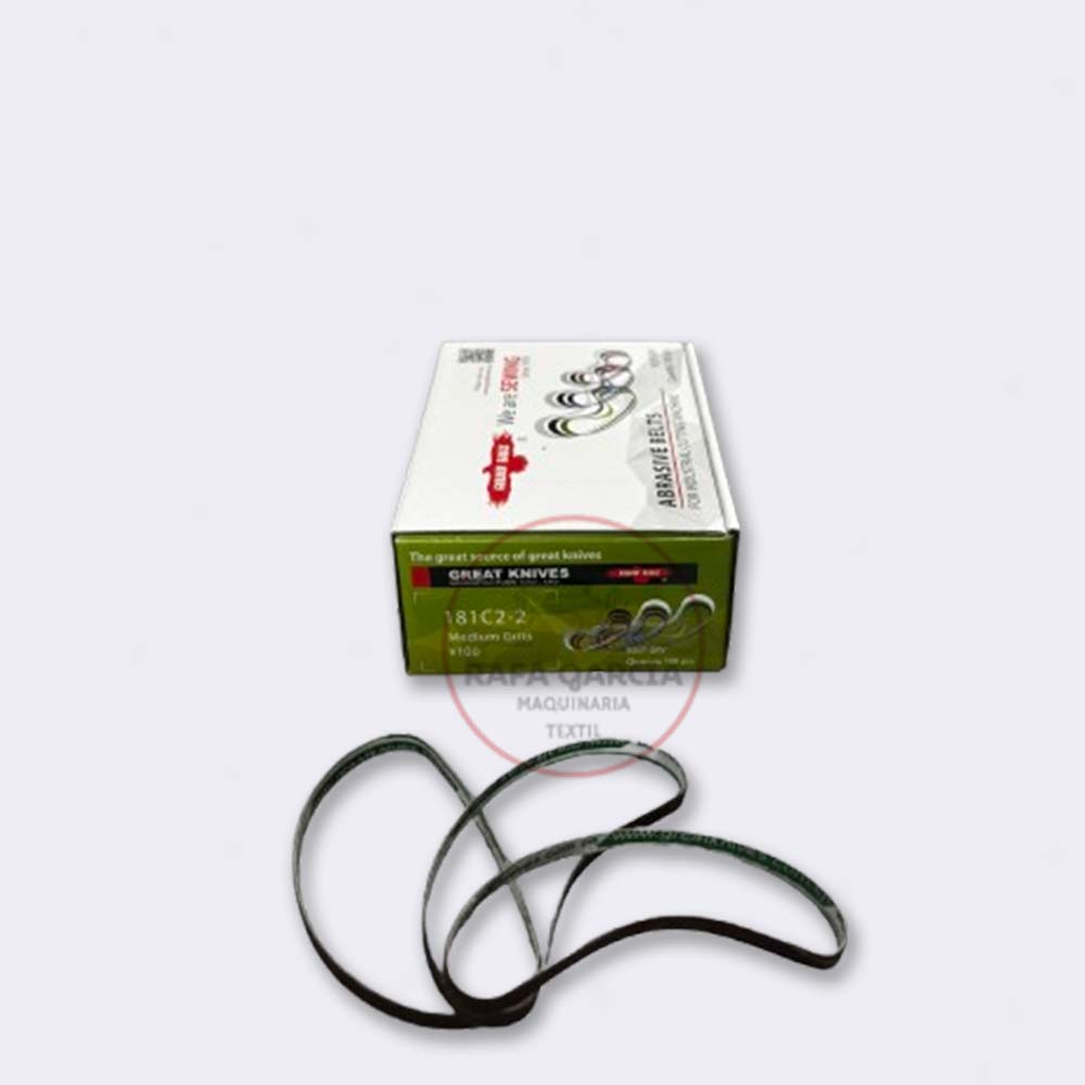 Cinta abrasiva grano medio 8″ para afilar cuchillas en las máquinas de corte manual Eastman y Km.