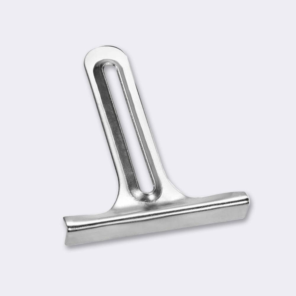 Guía en forma de T que se ancla con uno o dos tornillos en el área de costura de la máquina para obtener un acabado recto y profesional en las prendas.