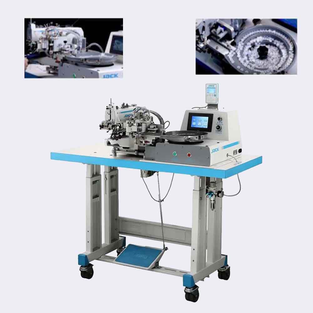 - Posibilidad de coser botones de 2 y 4 agujeros (para botón en cruz es necesario cambiar la leva Ref AJK40910019)