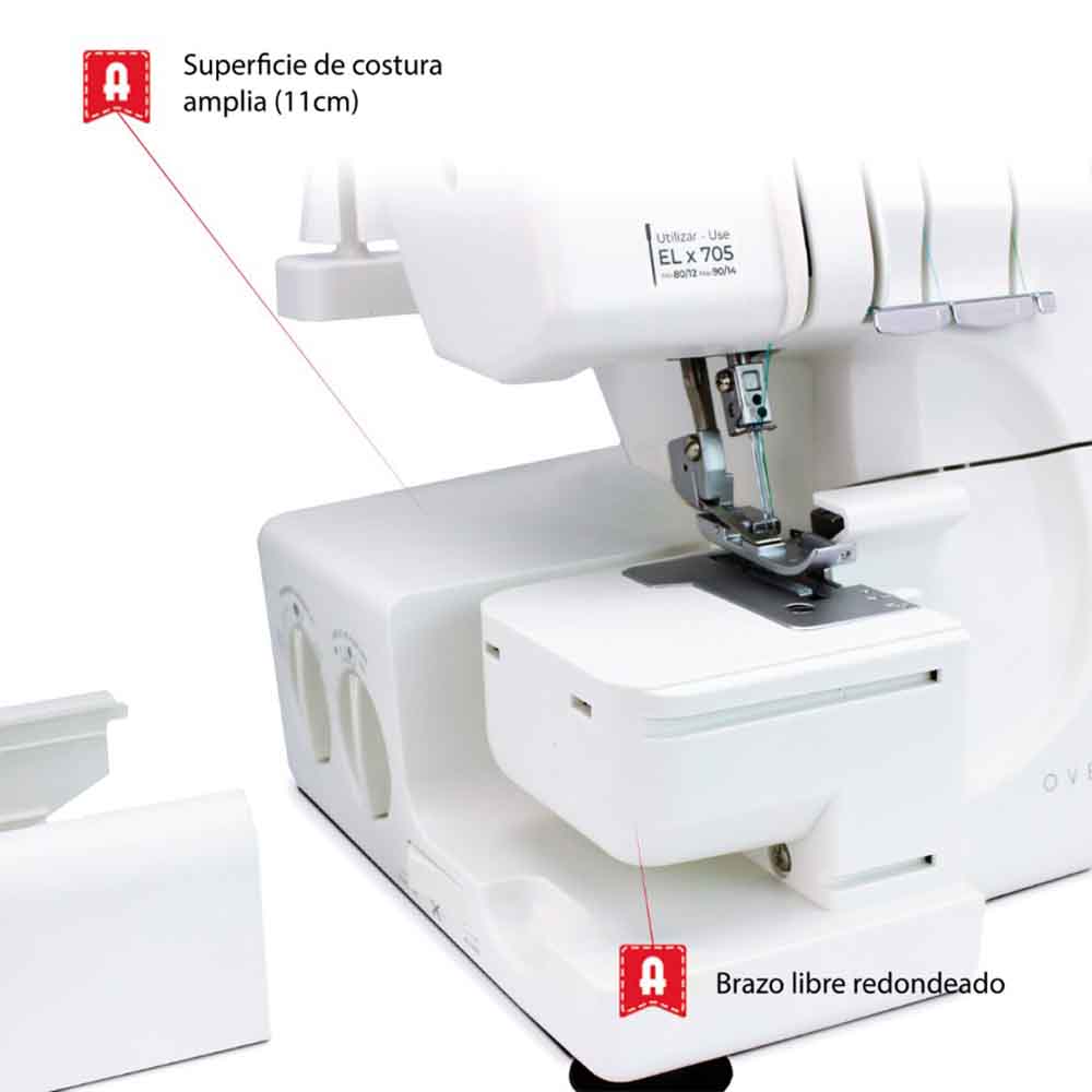 - Brazo libre redondeado para facilitar el transporte del tejido.