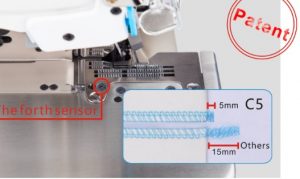Máquina de coser remalladora de 5 hilos eléctrica avanzada de alta velocidad con 3 modos de funcionamiento fáciles de cambiar: manual, semiautomático y automático. Barra de aguja lubricada, minimizando las vibraciones y el ruido. Fotocélulas, corte de hilo corto, detección de grosor de tela y alzaprensatelas automático. Con inteligencia Artificial que adapta automáticamente a diferentes grosores de tejidos.