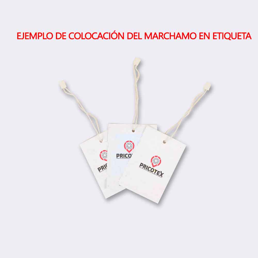 Los marchamos cuentan con un cordón de color, y un cuerpo y un terminal de plástico que permite la aplicación de las etiquetas colgantes con seguridad. Una vez cerrado el marchamo, el usuario no podrá abrirlo sin romper el cordón, con lo que cualquier manipulación resultará evidente.