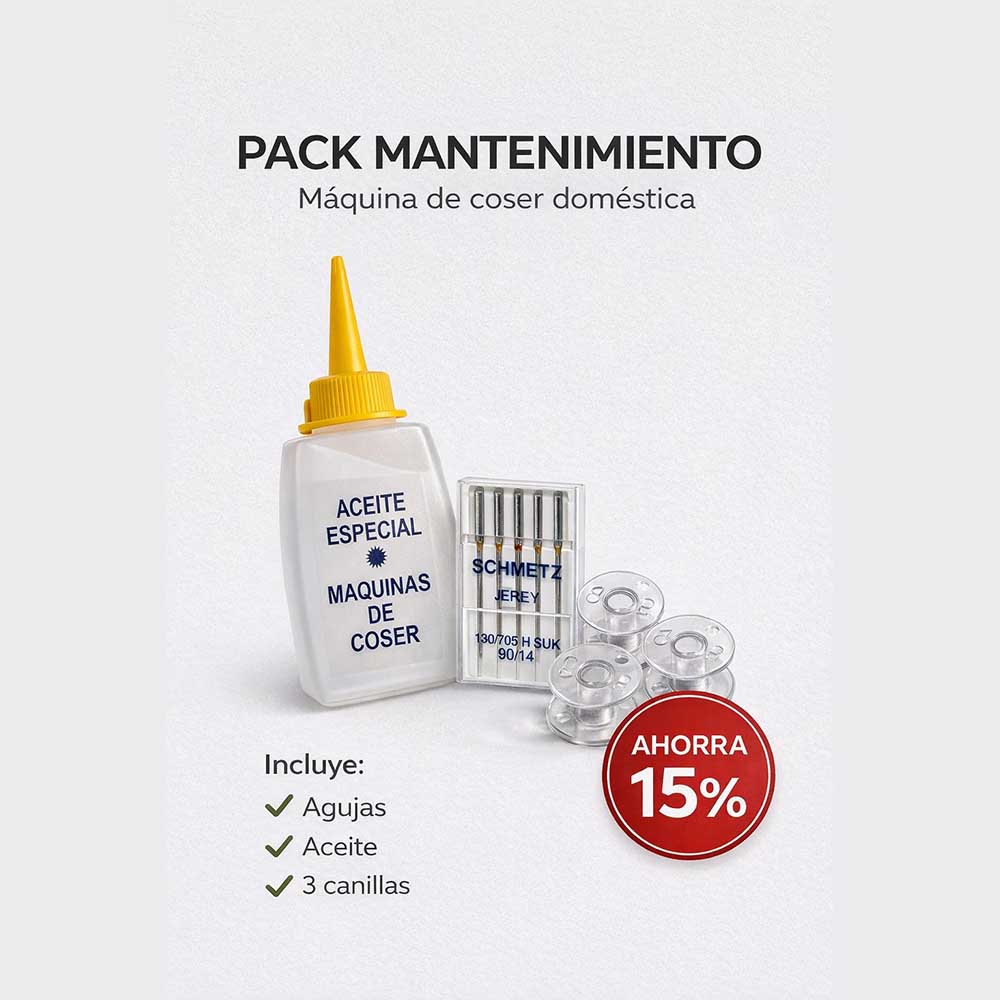 Este pack de mantenimiento básico incluye los accesorios esenciales para el cuidado de tu máquina de coser doméstica.