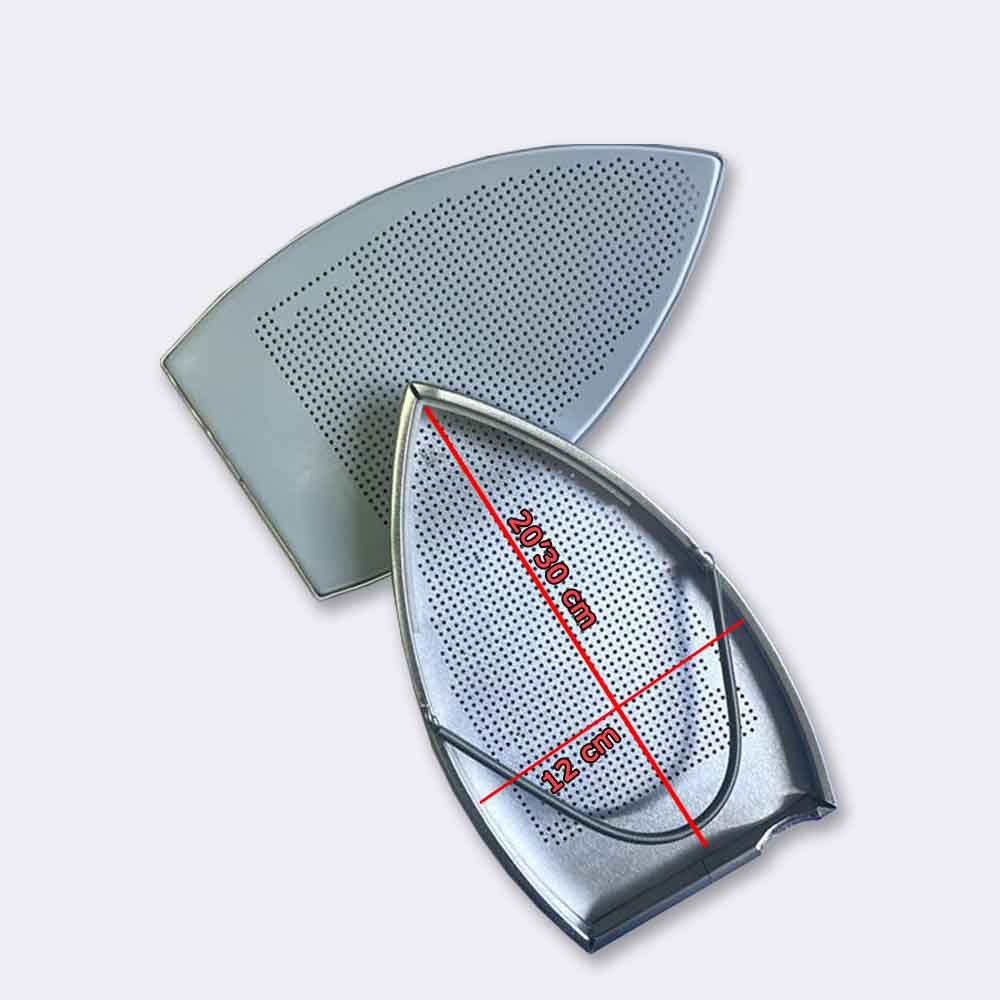Plantilla antibrillo con aluminio Ironmaster diseñada para acoplarse a la plancha mediante un muelle de alambre que permite que quede fijada durante el planchado.